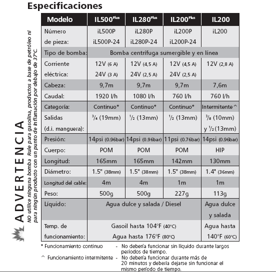 • Transvase ligero de gas oil (nunca nafta o similar) iL 500, iL 280 y iL 200 plus