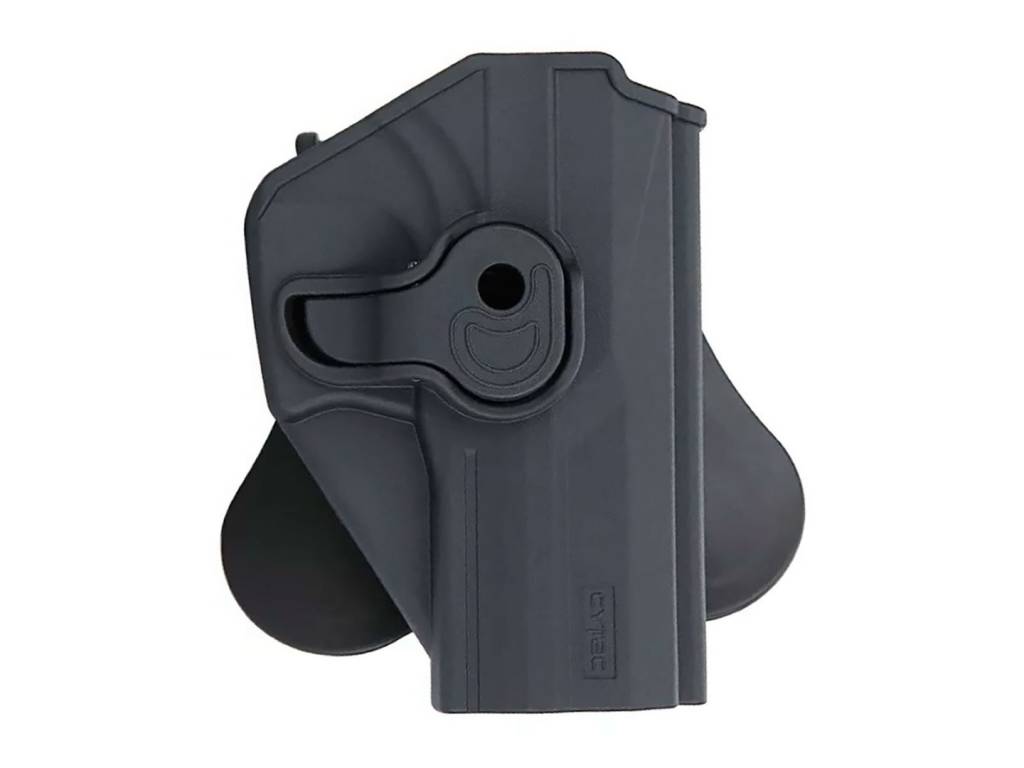 Con seguro anti extracción para pistolas GLOCK 17, 22, 31 de paleta rotativa regulable.