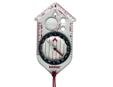 - Brújula cartográfica en baño de aceite, 4 escalas en km y lente de aumento.