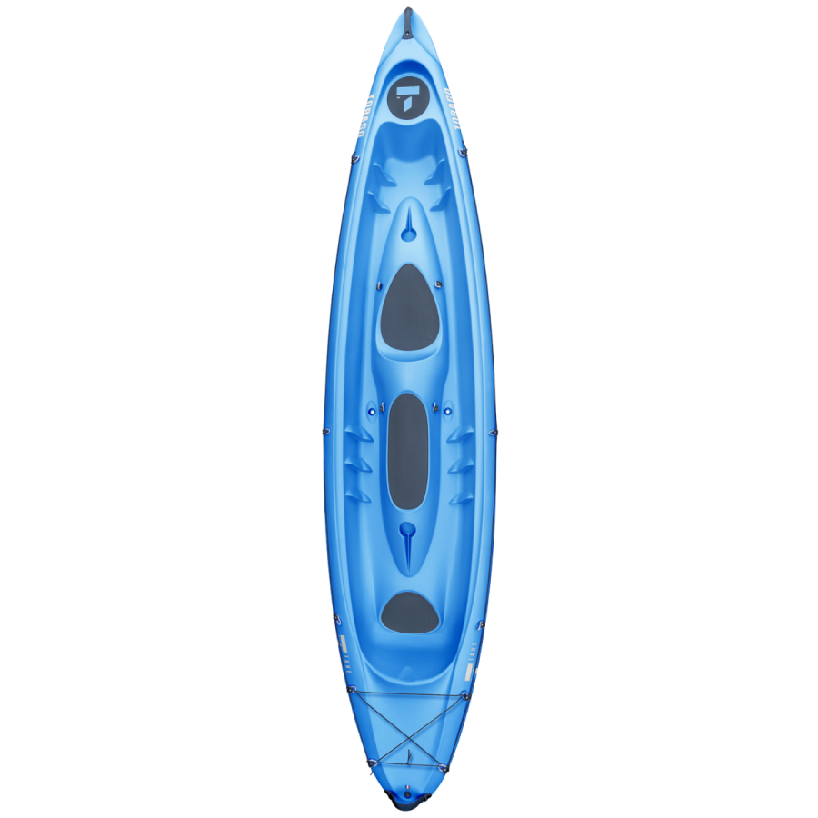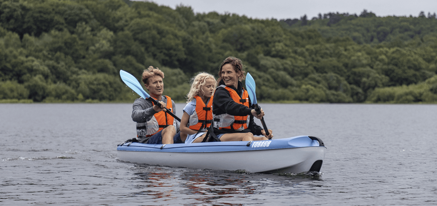 - El Tobago es el kayak familiar perfecto para dos adultos y un niño. Sus posiciones de asiento ergonómicas permiten varias posibilidades de uso: 2 adultos remando, con 1 niño.