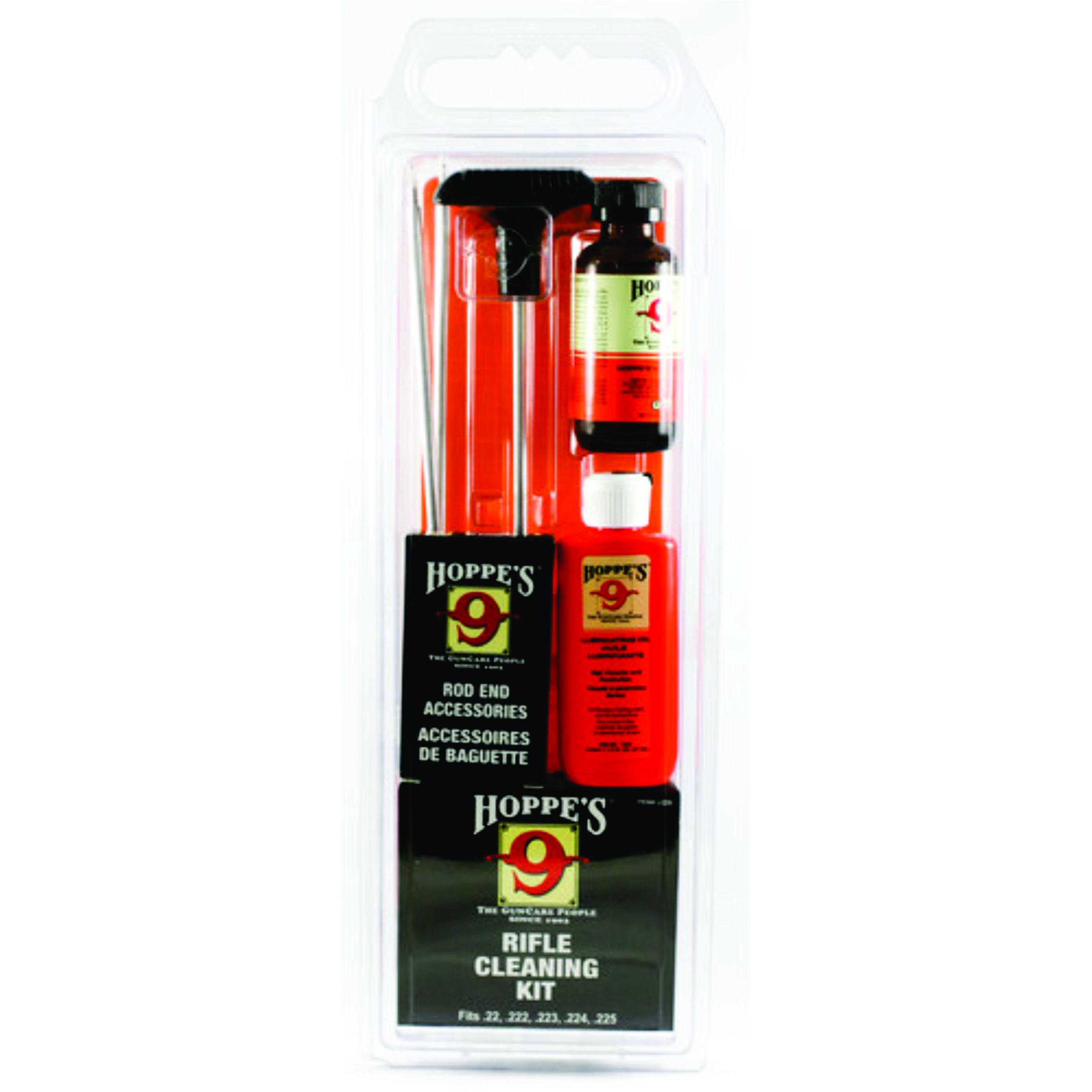 Diseñado teniendo en cuenta las necesidades de los cazadores y tiradores, el kit de limpieza de rifle n. ° 9 de Hoppe´s con varilla de aluminio viene en un empaque de Blister y contiene productos y herramientas comunes necesarios para limpiar y mantener su Arma calibre .22 LR