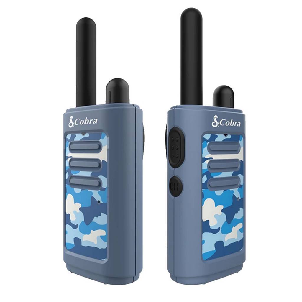 El Cobra HE150 contiene un par de walkie talkies fáciles de usar con diseño de camuflaje que son perfectos para niños y familias.